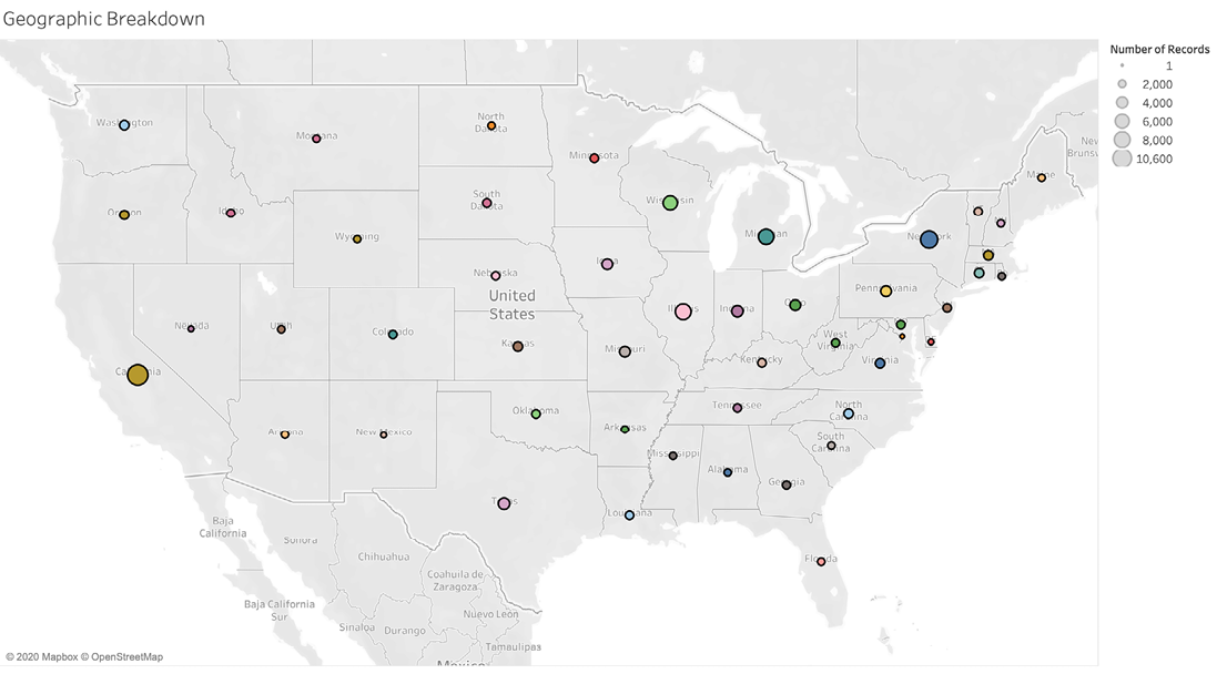 Figure 1. Relative number of documents reviewed by state. © Mapbox, © OpenStreetMap