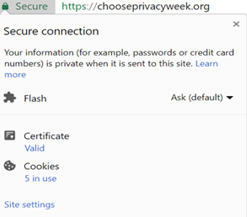 Unfortunately, the ALA website is mostly available only without SSL encryption. You don’t have to check the SSL Labs to see the difference. You can recognize ChoosePrivacyWeek.org as a “secure” connection by looking for the lock badge in your browser; click on that badge for more info. Here’s what this looks like in Chrome: