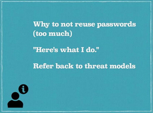 Getting good information about how to secure your privacy online can be challenging. This is doubly true if you are a technology novice, struggling to keep track of your own passwords, devices, and secret questions. You have the dual-pronged concerns of needing to learn this stuff from someone, but also not being sure whom you should trust. And many people are telling you the situation is urgent but then leaving you on your own to fix it. I’ve worked on an approach I feel is useful.