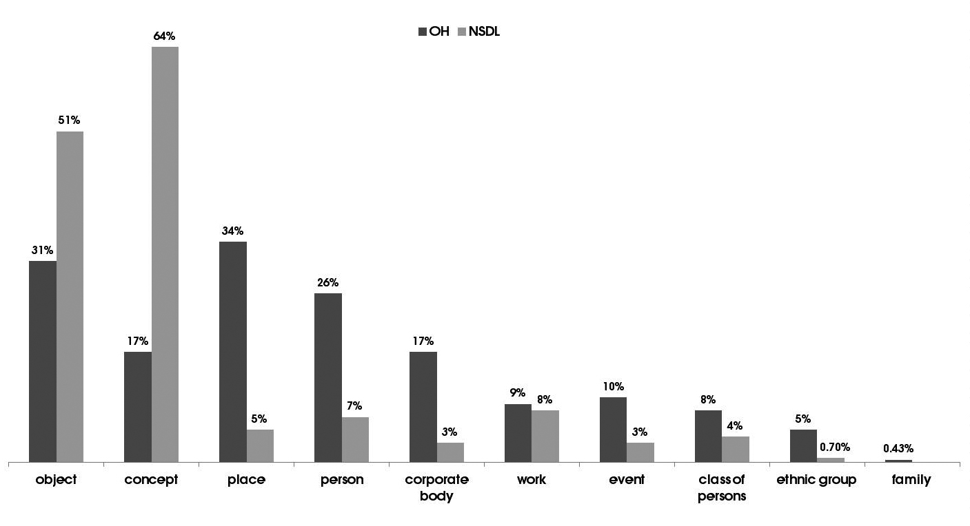 Figure 5 Search categories in OH and NSDL user search queries |