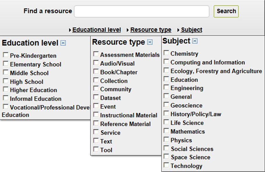 Figure 3 Search options in the National Science Digital Library |