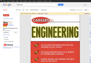 The NEA report showed the widest distribution in responses and we concluded its label as an e-book was more tenuous than the other examples and excluded it from further analysis. The Google e-book was the most recognizable of the remaining four with 77 percent (N = 589) choosing “e-book” as their answer. This was followed by the Knovel e-book at 74 percent (N = 567), the Gale encyclopedia at 54 percent (N = 416), and the Springer e-book proved the least identifiable with only 35 percent (N = 264) identifying it as an e-book. The question is then raised as to why there are such discrepancies. This survey study cannot answer the question but it can provide some observations and hypotheses for further study. The least and most recognizable e-books, the Springer e-book (see figure 5) and Google e-book (see figure 6), are examined.