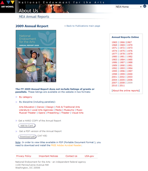 - An annual report from the National Endowment for the Arts (NEA)