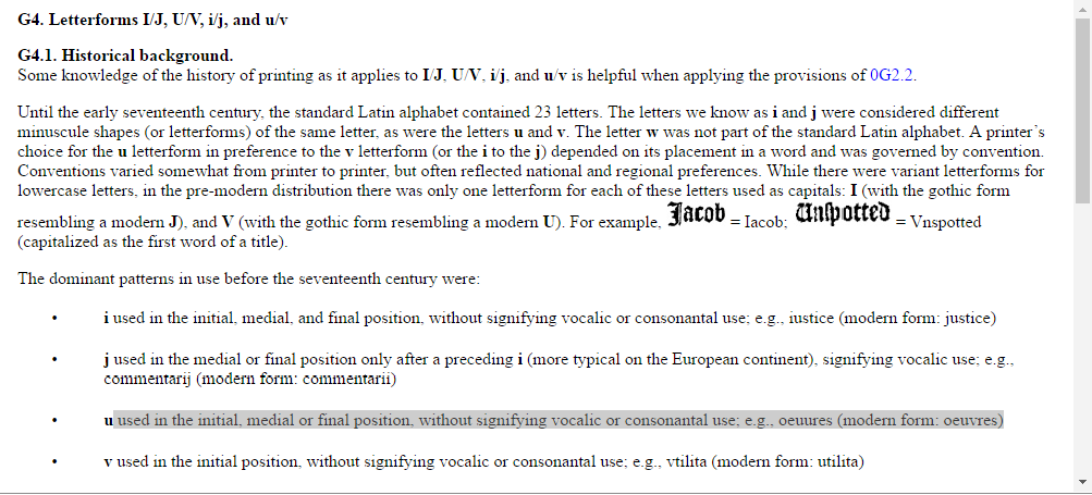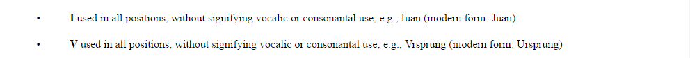 However, since RDA 1.7.2-1.7.9 do not address the use of the letters i/j, u/v, the alternative offered by RDA1.7.1 was used for transcription guidance: