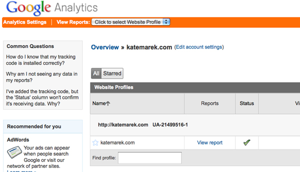 The checkmark lets you know the program is active. The “View report” link takes you to your Dashboard and your GA reports. |