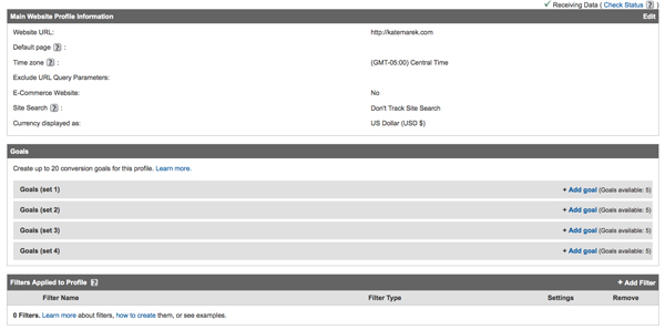 The downside for most libraries to creating separate profiles is that no aggregate reports are available for those separate profiles. See chapter 4 for a more detailed discussion of GA reports.