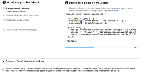Remember that your Google Analytics Tracking Code must be pasted on all of your pages in order for the program to capture complete data across your website. You should begin to see results in your account views within 24 hours of your page tag installation.