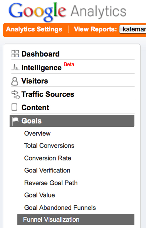 If you would like to work with Funnel Visualization, set up the funnel path when you identify your goal. Find the report area under the expanded Goals menu (figure 11).