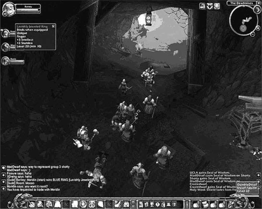The next phase in the development of virtual worlds came with the success and popularity of MMORPGs, beginning with Meridian 59 in 1996.13 In MMORPGs, players enter an online graphical and persistent world where they interact with many other players and assume role-playing characters while attempting to accomplish a task or achieve a goal. Though not the first 3-D MMORPG, Ultima Online is widely regarded as a seminal development and a technical as well as financial precursor to other foundational MMORPGs such as EverQuest and WoW (figure 3).14Ultima Online was packaged and sold as a game in retail stores, but once the game was purchased, a $9.99 monthly subscription fee was required to play the game online. Within three months of launch, Ultima Online had 50,000 subscribers, and over 100,000 within a year, each paying $9.99 a month to play.15