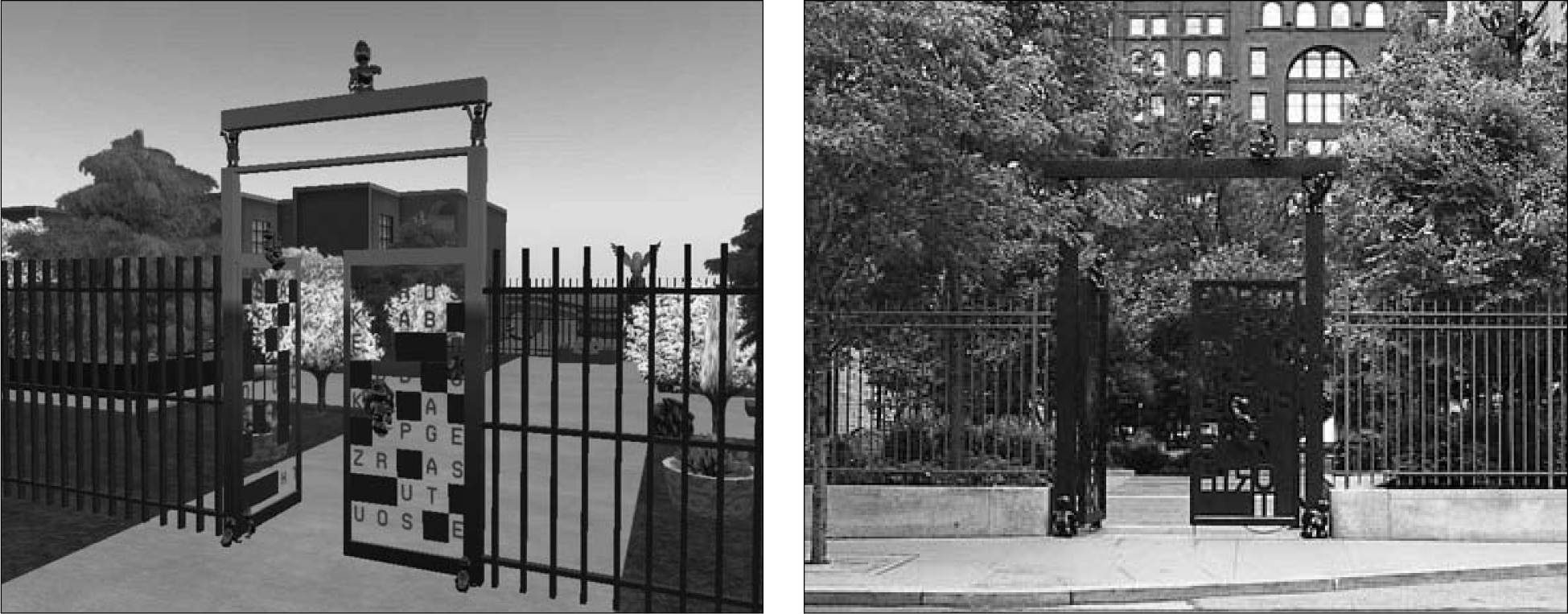 The CPL Reader's Garden in Second Life (left) and real life (right). |