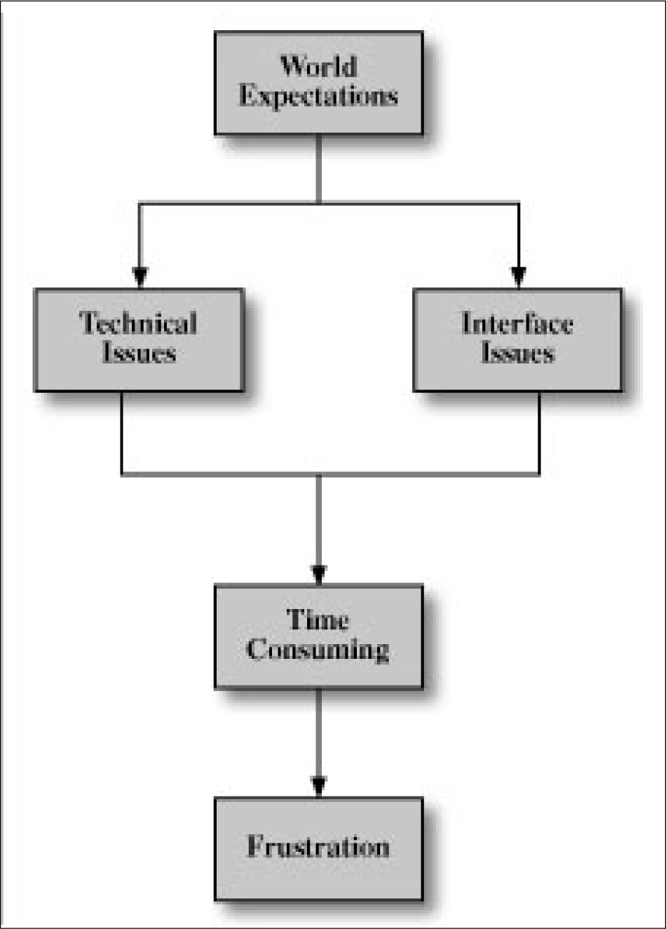 The themes of interface difficulty, technical difficulties, world expectations, and time-consuming combine to create the Second Life learning curve. As a diagram, the learning curve for students looks similar to figure 13.
