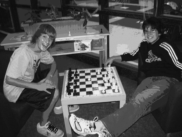 Members of the VRC Reading Club playing chess in the Pocahontas Middle School Library. |