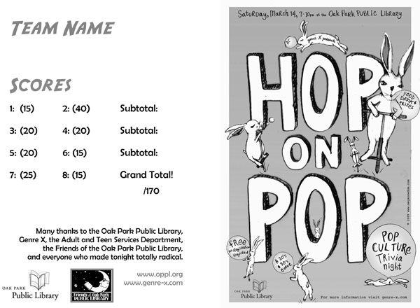 Outside pages from Oak Park public Library's Hop on Pop booklet |