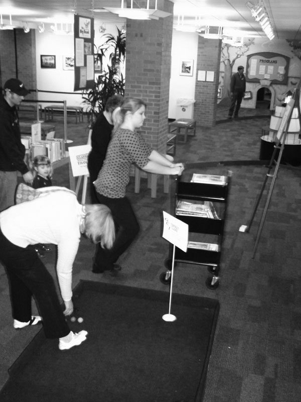 We expected that this event would bring people of all ages into the library and that it would be fun for everyone, and our expectations proved accurate. We had golfers of all ages including many teenagers. There were a number of family groups, including a number of fathers with their children—perhaps a benefit of holding the event on a Sunday. We also saw quite a few adult groups, including a few very serious golfers. Everyone appeared to have a great time, and we received lots of positive feedback. Many people specifically said they hoped that the library would do the event again.