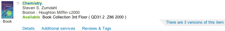 Primo supports user-generated tags, ratings, and reviews. The Reviews & Tags link provides user-contributed reviews and a tag list or tag cloud (assuming reviews and tags exist for that item). In a typical configuration, a library may have the user log in to the user's Primo account (described below) to contribute tags, ratings, or reviews. The library can review submissions first, if it prefers. The Additional Services and Online Resources links invoke the library's link resolver to broker the connection to the full text within the resulting frame or to otherwise provide a list of aggregators or content providers providing the full text from which the user can then choose (depending on the local library's link resolver configuration). For physical items harvested from the library catalog, selecting the Holdings List link opens a new browser window or tab. Because libraries can configure which links are displayed, a library may opt to not include a Holdings List link in either the brief or the detailed record view and instead display the real-time status information (status, call number, location) without the need for an extra click. Should a library choose to include the Holding List link, it can be configured to open up a framed view of the full item record—displayed within the native ILS—while still maintaining the user's presence within the Primo experience (with the Primo search box and the various links pulling up additional information about the item still present).