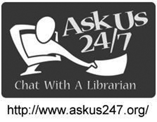 The logo for Ask Us 24/7, a virtual chat “service of cooperating New York State libraries and library systems, including the New York 3Rs Library Councils.” www.askus247.org. |