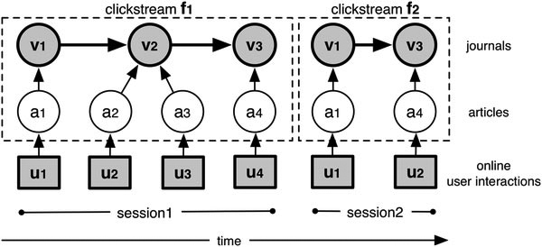 The MESUR team has collected analyzed a wide variety of longitudinal usage data from libraries (University of Texas's nine campuses, six health institutions, and California State University's twenty-three campuses) and vendors such as Thomson Scientific (Web of Science), Elsevier (Scopus), JSTOR, and Ingenta. Collecting a few pieces of information about each “request” (date and time of the request, session identifier, article identifier, and request type) allowed researchers to recreate individual search sessions to construct a complex model of influence and communication within scholarly networks.21 In so doing, they have developed a more information-rich ontology for analyzing usage events based on the following elements: