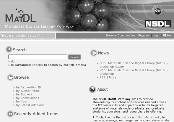 MatDL is not a library-driven project, but it is a digital library with extensive science data housed within its structure. It is a library built by researchers and educators. I have included it as a case study here because it is important to note that a library project does not necessarily mean a project built by librarians. We are not the only ones who have ideas about how data and materials should be shared and stored.