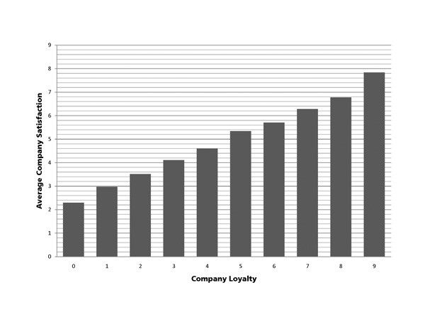 We focus on the question dealing with ILS satisfaction as the core of the survey. As we turn to responses to the other questions, such as that of company satisfaction (figures 7 and 8), we note a very strong correlation (0.81) with ILS satisfaction scores. The survey results do not, for example, reveal any specific cases where libraries hold the product in high regard but do not like the company or its support quality.