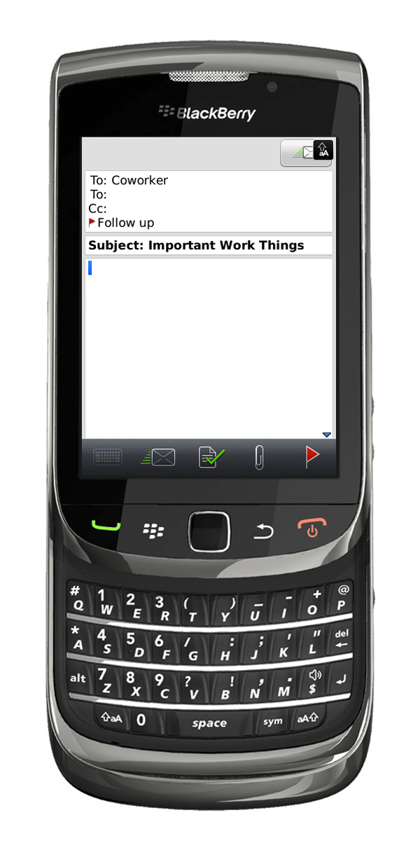 Using e-mail with a QWERTY keyboard on a BlackBerry device. |
