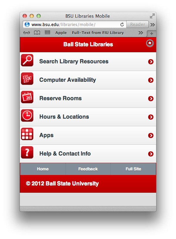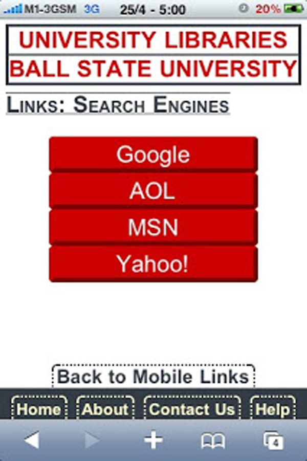 The first version of the BSU Libraries mobile website in 2004 was quite sophisticated for its time. It provided information about library collections as well as library services and even offered a mobile catalog search. But many libraries’ online catalogs were not mobilized even as late as 2010, and some libraries still struggle with mobilizing their library catalogs.