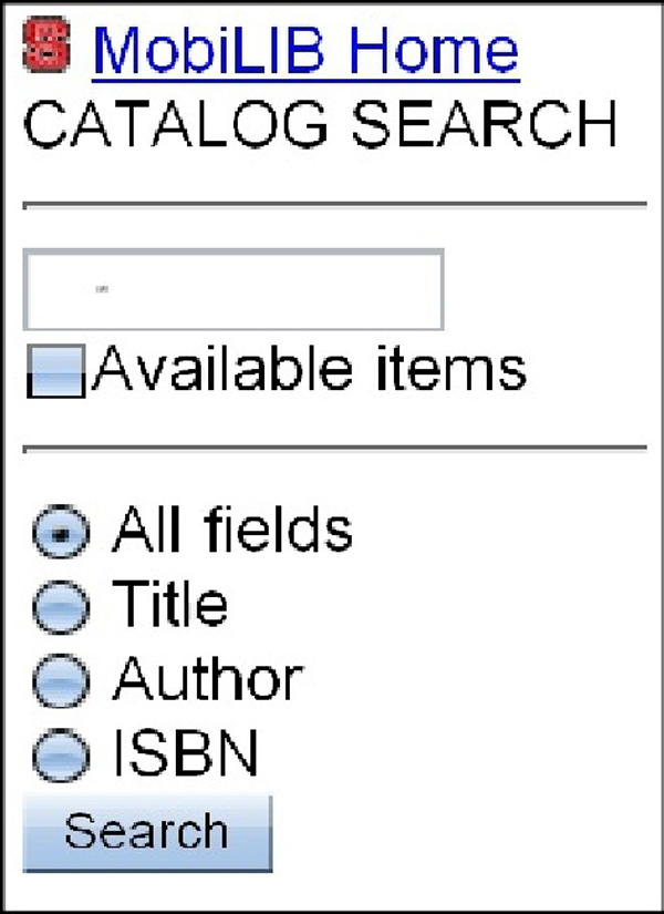 Once your library catalog is mobilized, make sure to add the library search box to the home page rather than creating a separate search page and linking to it. Since more and more library patrons are expecting to search and find a library item using a mobile device, showing the library catalog search box prominently on the mobile website home page will improve their library mobile experience. For a mobile site, it is preferable to use one simple search box that can search for both books and other library items, such as journal articles or documents in a digital repository. If your library uses a web-scale discovery service such as EBSCO’s Discovery Service, ProQuest/Serials Solutions’s Summon, OCLC’s WorldCat Local, or Ex Libris’s Primo Central Index, consider using that system as the default search box in your mobile website. In the previous section, we saw that academic library patrons showed great interest in using a mobile device to start their research and access library resources online.