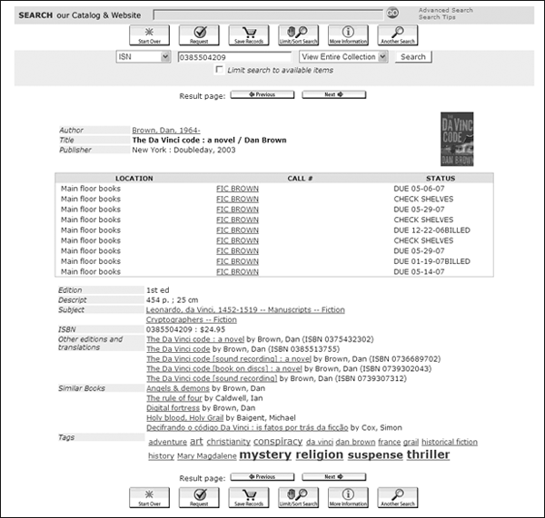 Next-generation library interfaces involve social networking features, such as end-user tagging and suggestions of related works based on a social network. A library can add these features to its existing library catalog through a product offered by LibraryThing (see figure 25).