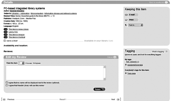 Primo's design slants toward the needs of academic and research libraries, consistent with the demographics of Ex Libris's customer base. The product focuses on the typical academic library environment that includes the local ILS, a large collection of electronic-resource subscriptions, and locally managed digital collections. To gain full advantage of Primo, the MetaLib federated-search utility and the SFX reference linking application should already be in place. Primo can interoperate with an institutional authentication service. Such an environment is much more common in university and research libraries than in public or school libraries.