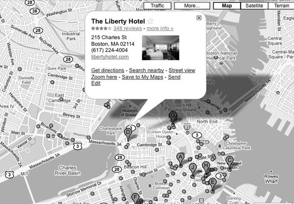 Google Map with hotels. |