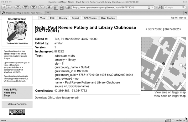 OpenStreetMap.org display of details. |