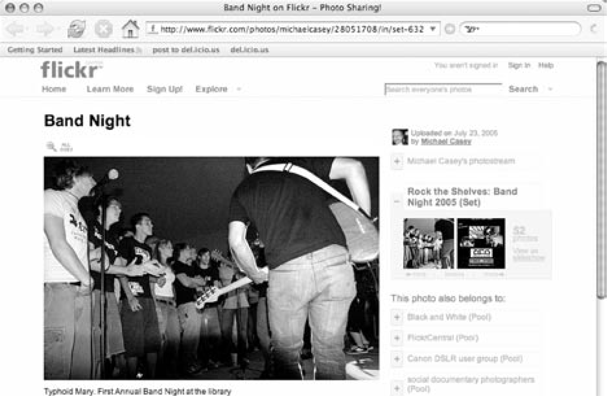Once again, some cutting-edge librarians found their way to Flickr and established their own sites—pools related to all things library and librarian; groups that posted images of librarians' desks; and some libraries actually registered their own Pro accounts.