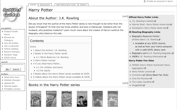 Harry Potter page at SJCPL Subject Guides; built with MediaWiki. |