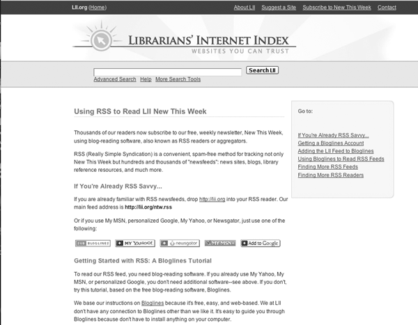 Librarians' Internet Index, “What's RSS?” http://lii.org/pub/htdocs/understandingrss.htm