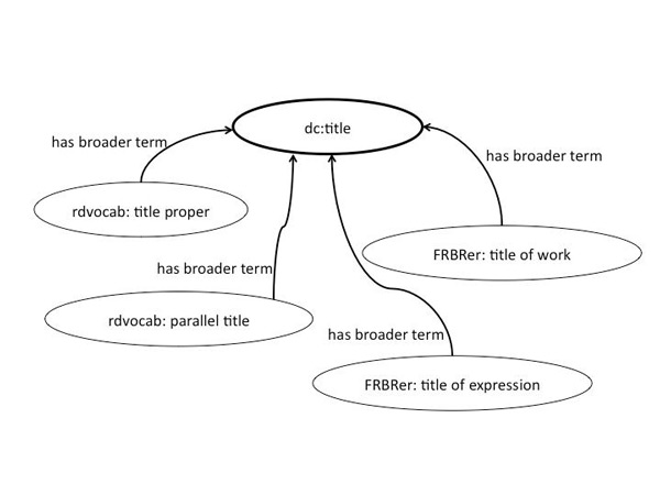 Specific titles from RDA and FRBR can link to Dublin Core for more compatibility with more generalized metadata. |