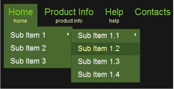 Example of problematic “drop-down flyout” menu. Image from SuggestSoft.com, “jQuery Drop Down Menu Style 2 1.5,” accessed May 21, 2012, www.suggestsoft.com/soft/apycom-jquery/jquery-drop-down-menu-style-2. |