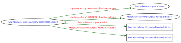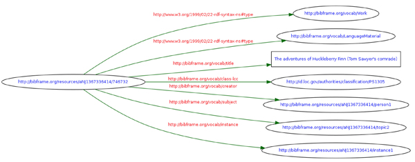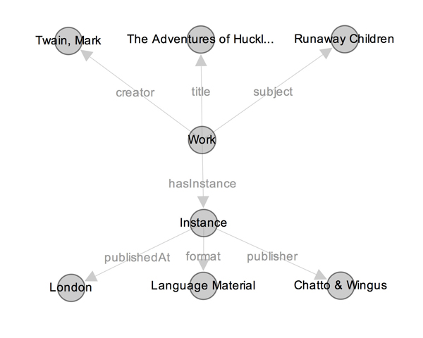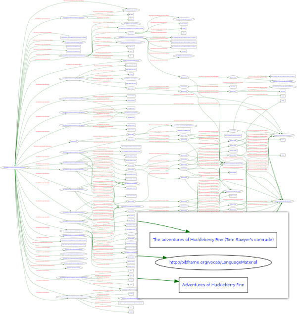 A graph visualization of the book The Adventures of Huckleberry Finn in the BIBFRAME specification |