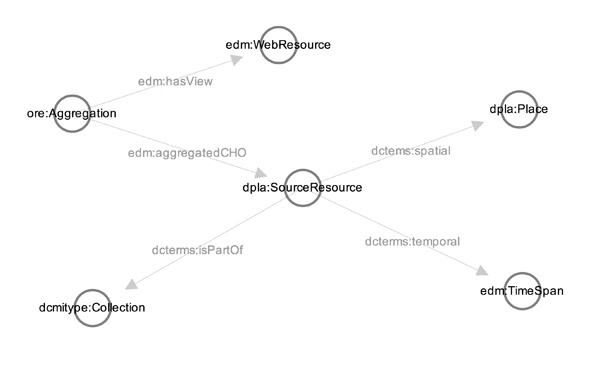 DPLA class and property model as adapted from DPLA metadata documentation |