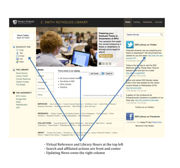 During the summer of 2009, Wake Forest University (WFU), a university of over 7,000 enrolled students, launched an NGC at the Z. Smith Reynolds Library. I spoke with Library Dean Lynn Sutton and Assistant Director for Technology Services Erik Mitchell about their implementation of VuFind to learn more about why they chose the product and what impact it has had on the library.