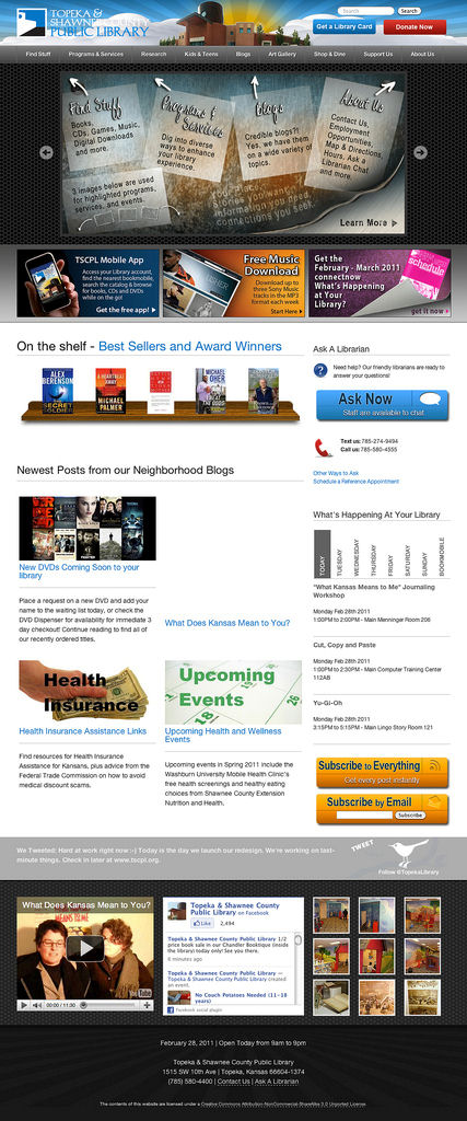 We didn’t move every page from the old site to the new site. Our website is blog-based, and we write articles about anything from book reviews to events happening at the library. Our web team examined each page on our old site and decided what we needed to keep. We then asked the staff in charge of sections that were not being kept in their entirety to double-check the content to see if we were leaving out anything important. Those staff members were able to manually move over any content that they deemed vital to the updated site.