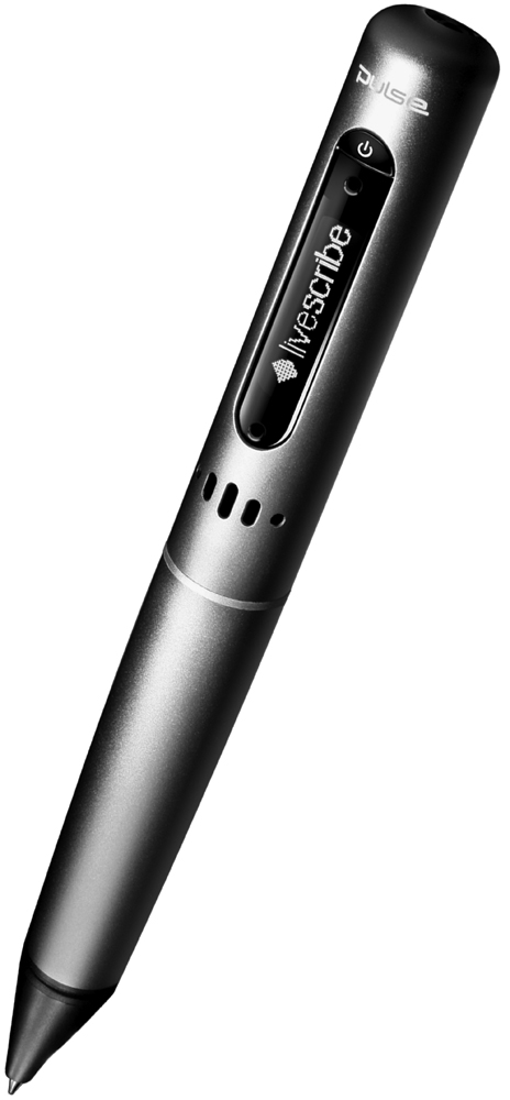 The Livescribe Pulse is used with special paper that has a microdot pattern printed on it. You can purchase said paper in a variety of styles (notebook, notepad, Moleskine, etc.), or you can print your own using a laser printer. The microdots are used to track the position of the pen as it writes. At the same time, the pen can be recording, capturing the audio in the room and time-stamping it to the writing.