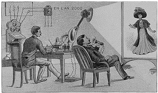 Video communication in 2000, as imagined circa 1910 (Wikimedia Commons). |