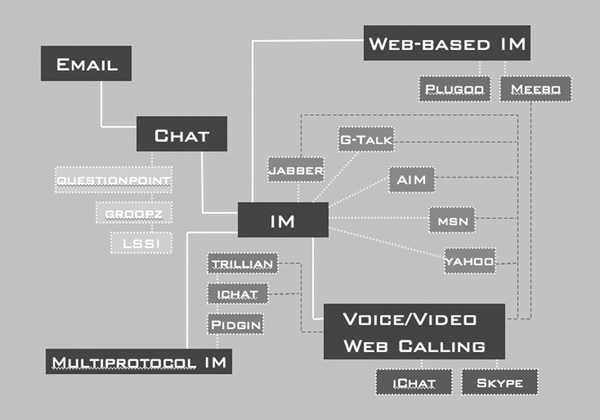 Staffing multiple services was a constant issue among libraries piloting Skype reference on the call-in model, similarly taxing to us during the kiosk pilot. “The staffing of any service is a challenge,” noted Millie Gonzales of Framingham State College, recalling the difficulty of integrating Skype into Whittemore Library's reference workflow. “We offer email, telephone, IM, SMS reference service as well. Sometimes it is difficult to juggle and prioritize the services because of our staffing levels.”8 By setting up a one-stop multifunctional account to consolidate the multiple reference streams that libraries contend with as natural consequence of social media diversification, universal communicators like VoxOx (see chapter 2) can provide a powerful way to mitigate this problem and integrate new options more gracefully into existing workflows. Building on the strategy already provided by tools like Trillian and Meebo that allow simultaneous IM logins, universal communicators can be centrally field incoming reference queries from e-mail, Facebook, Twitter, IM, SMS, VoIP, mobiles, and landlines without affecting the patron experience.