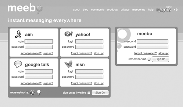 Meebo.com login page. |
