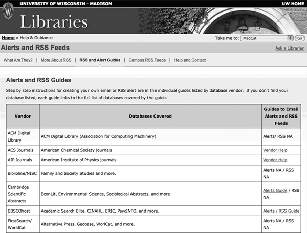 University of Wisconsin–Madison Libraries Alerts and RSS Feeds page. |