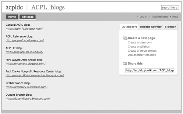 The ACPL also uses a wiki for the group work of its “Digital Collective.” Check out the ACPL Digital Collective for a perfect example of using a wiki to organize, annotate, and share technology planning and more (see figure 7).