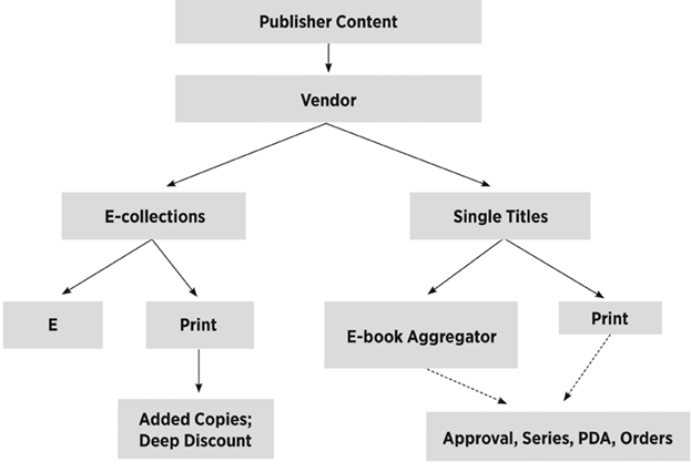 While the tendency for libraries to go direct to publishers is still strong, it seems to be declining as vendors and e-book aggregators develop the capacity to integrate and manage print and e-content. These services have provided significant value to libraries in the print world and a change in format should not necessarily nullify that value. Still, old habits die hard and opportunities can be persuasive, and publishers also have a justifiable interest in making sales directly whenever possible.