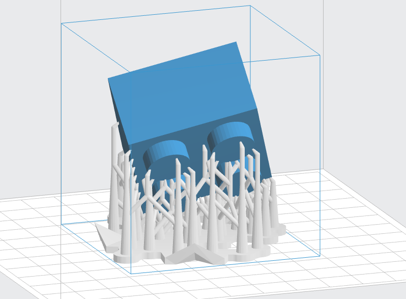 All FDM printer software has the built-in ability to include supports for printing when issues like this arise. Printing an object with supports means that the software builds in vertical towers (figure 1.5) whose only purpose is to give the object a structure upon which to print. The best case for a support structure is that it would be easily removable from the rest of the model, either by just peeling them apart or, in a slightly more advanced process, by printing supports in a type of plastic that is soluble in a solvent while printing the object itself in a plastic that is insoluble. The most popular of these (discussed in more detail in the next chapter) is high-impact polystyrene, or HIPS, which allows a printer with dual extruders to print support structures that can be dissolved off the actual print.