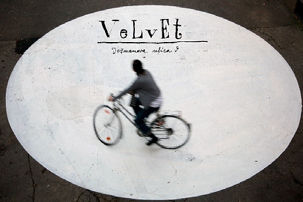 Café Velvet is a well-known hangout, located on an iconic street in the heart of Zagreb’s Old District that’s become a major tourist draw in recent years. The moment you walk into the café, you notice that Velvet celebrates art and human creativity in every form imaginable. I certainly wasn’t a stranger to it. I discovered it years ago when attending a poetry reading organized at the café. It’s also a gallery displaying the artwork of Croatia’s well-known artist and florist, Saša Šekoranja, which means that impeccable attention is given to every detail (the official image for Velvet FREZ, showing a woman on a bicycle, was designed by Šekoranja himself; see figure 3.1).