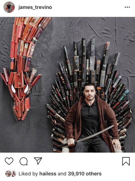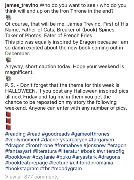 Example of buried hashtags using emoji by @james_trevino (Source: James Trevino, “Who do you want to see end up on the Iron Throne,” October 20, 2018, https://www.instagram.com/p/BpKVZ6pFfiz/.)