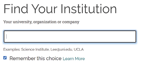 Imagine a user is on JSTOR and tries to read a specific article. To activate the SAML-based method, also known as single sign-on (SSO), the user clicks on the sign-on button or link and identifies the institution they are from. This is typically done by selecting from a list of institutions. This sign-in process is known as the Where-Are-You-From (WAYF) process.